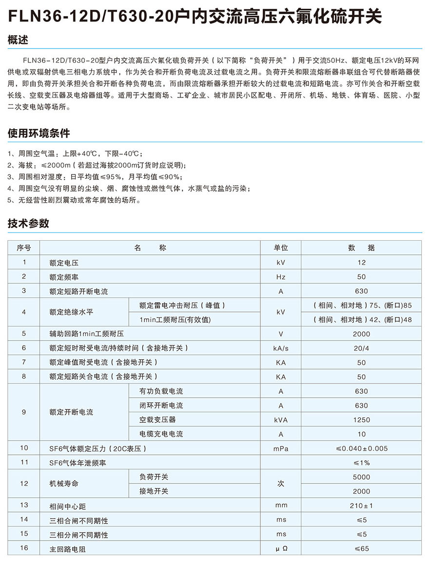 FLN36-12D/T630-20户内交流高压六氟化硫开关