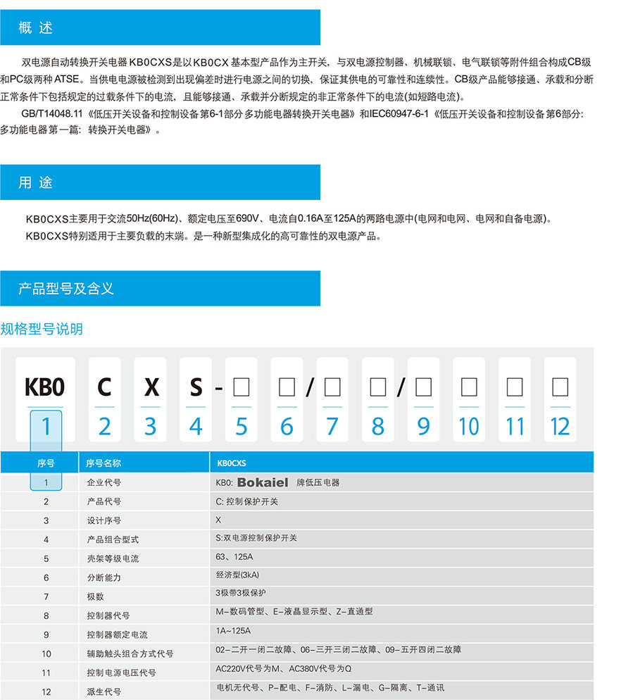 KB0CXS双电源型系列控制保护开关电器