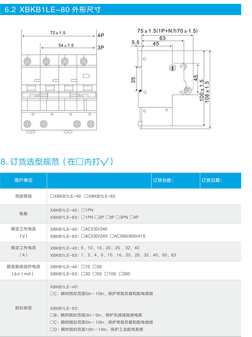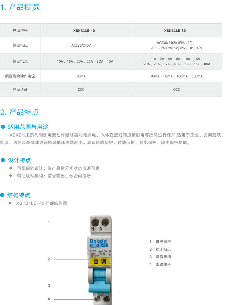 XBKB1LE剩余电流动作断路器
